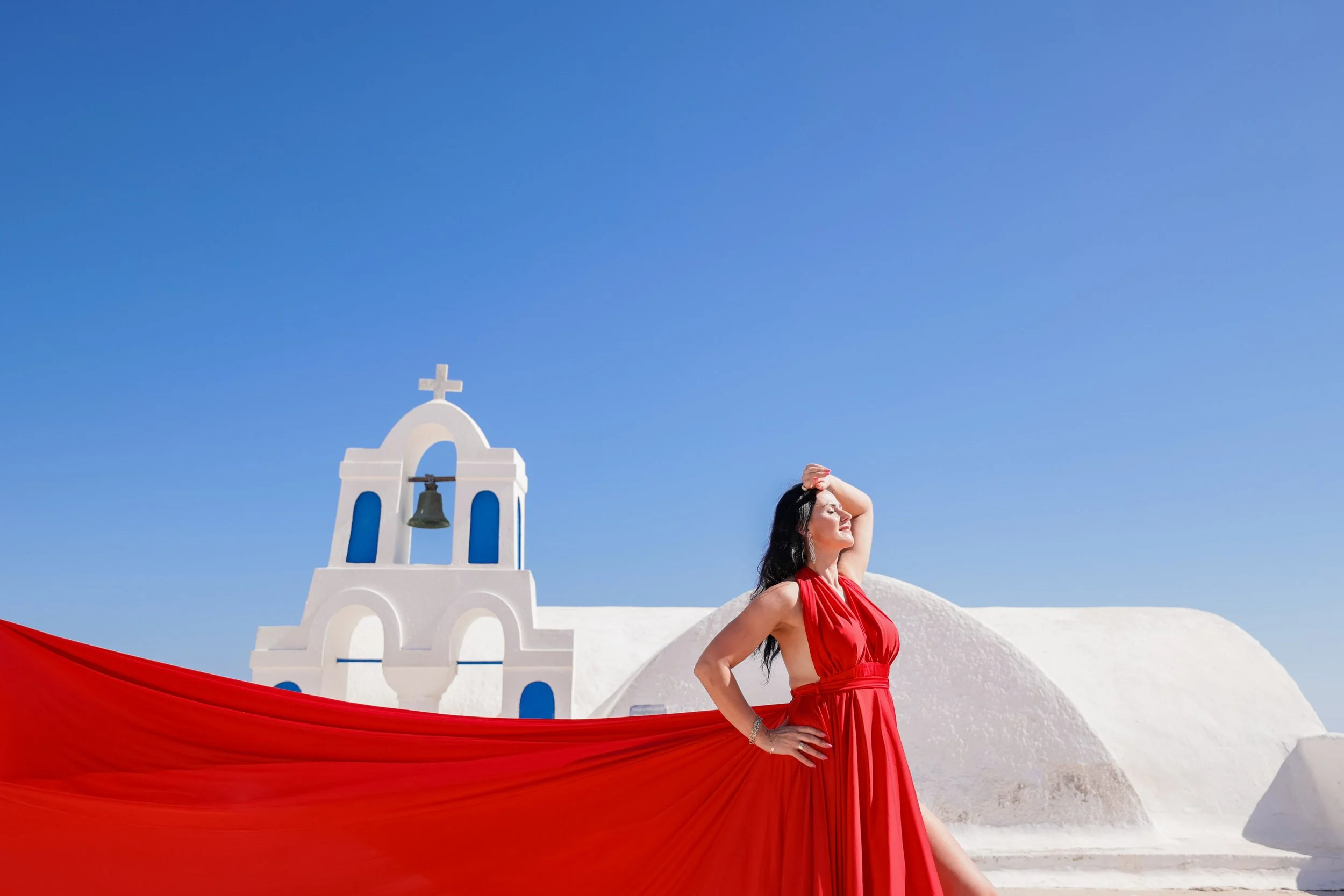 Imagine yourself standing on the edge of the world, with the breathtaking blue of the Aegean Sea stretching endlessly before you. Now picture a flying dress, catching the wind and dancing in the sky, its vibrant colors creating a striking contrast against the beauty of Santorini’s caldera. A flying dress photoshoot is not just a photo session; it’s an experience that makes you feel like a goddess. With a wide range of stunning dress colors to choose from, you can be sure you’ll find the perfect one to express your unique style.